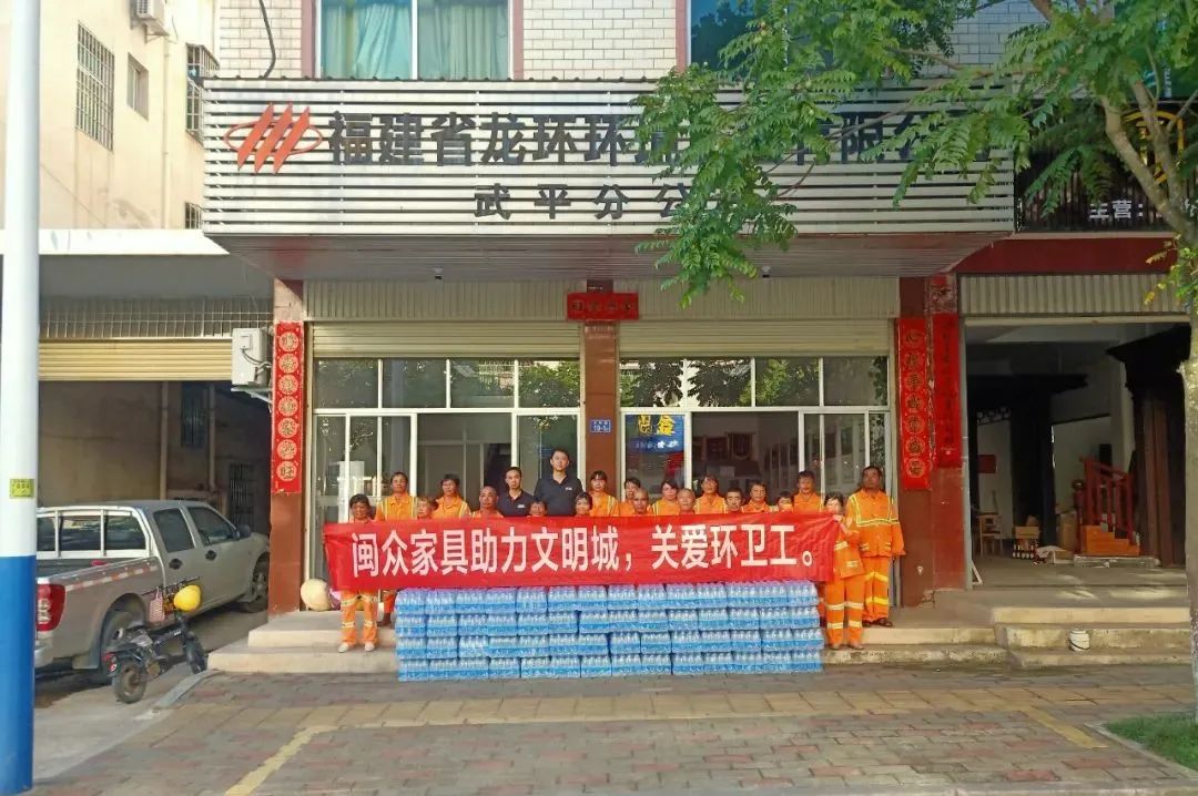 8月15日,365彩票软件app下载_365BET体育下载_365bet亚洲真人网址爱心企业闽众家具为辛勤奋战创城一线的环卫工人捐赠260件矿泉水,益民堂药店捐赠50盒藿香正气水(防暑药品),体现爱心企业的社会责任与担当。