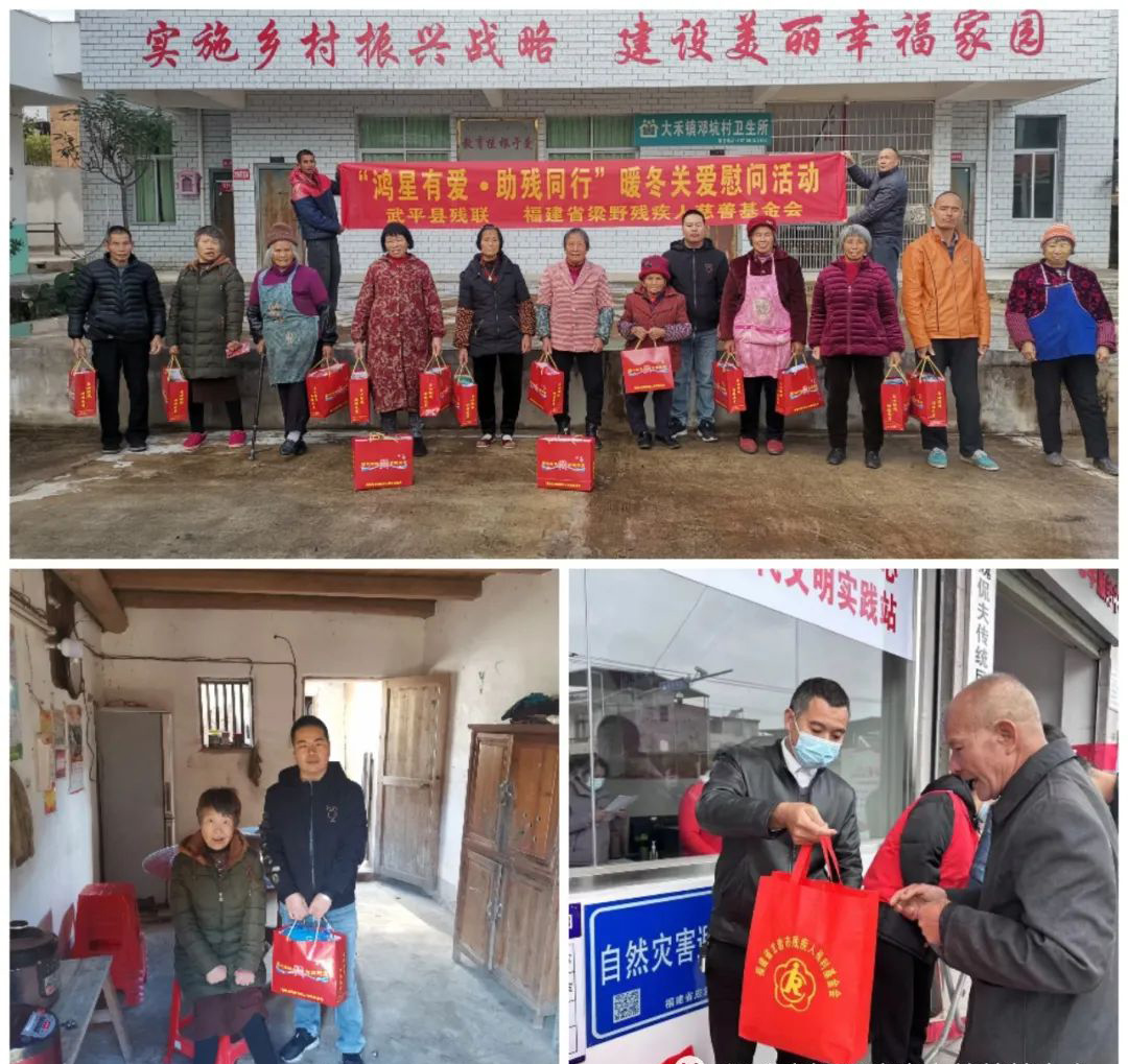 12月3日,开展关爱生活困难残疾人活动。志愿者慰问走访大禾镇邓坑村、万安镇上镇村和平川街道城南社区共60名生活困难残疾人,了解他们家庭生产生活情况,宣传惠残助残政策和基金会慈善公益项目等,并为他们每人送上鸿星尔克羽绒服一件。慰问对象纷纷表示感谢县残联、基金会及鸿星尔克爱心企业的暖心之举,让他们在寒冬倍感温暖!